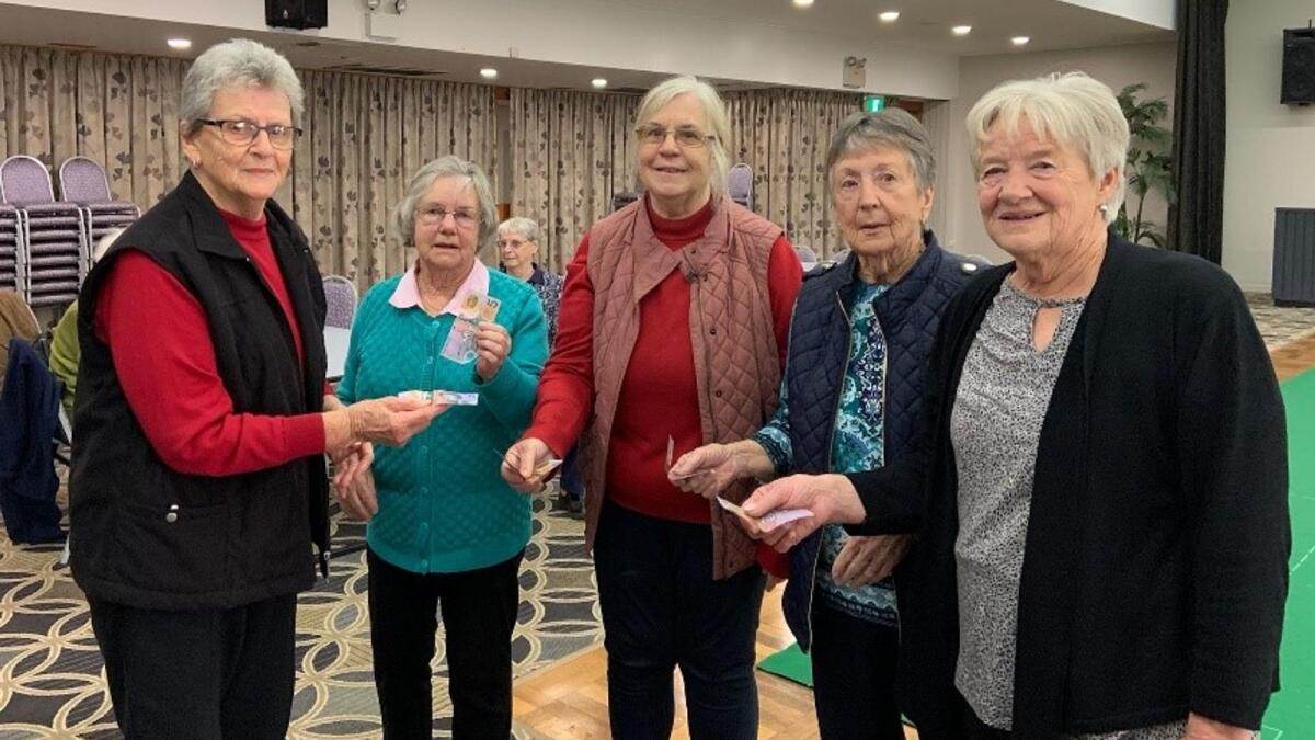 Thursday winners (from left) president Marg Chick, Mary Stevens, Heather Wills, Joy Mann and Jenny Amor.