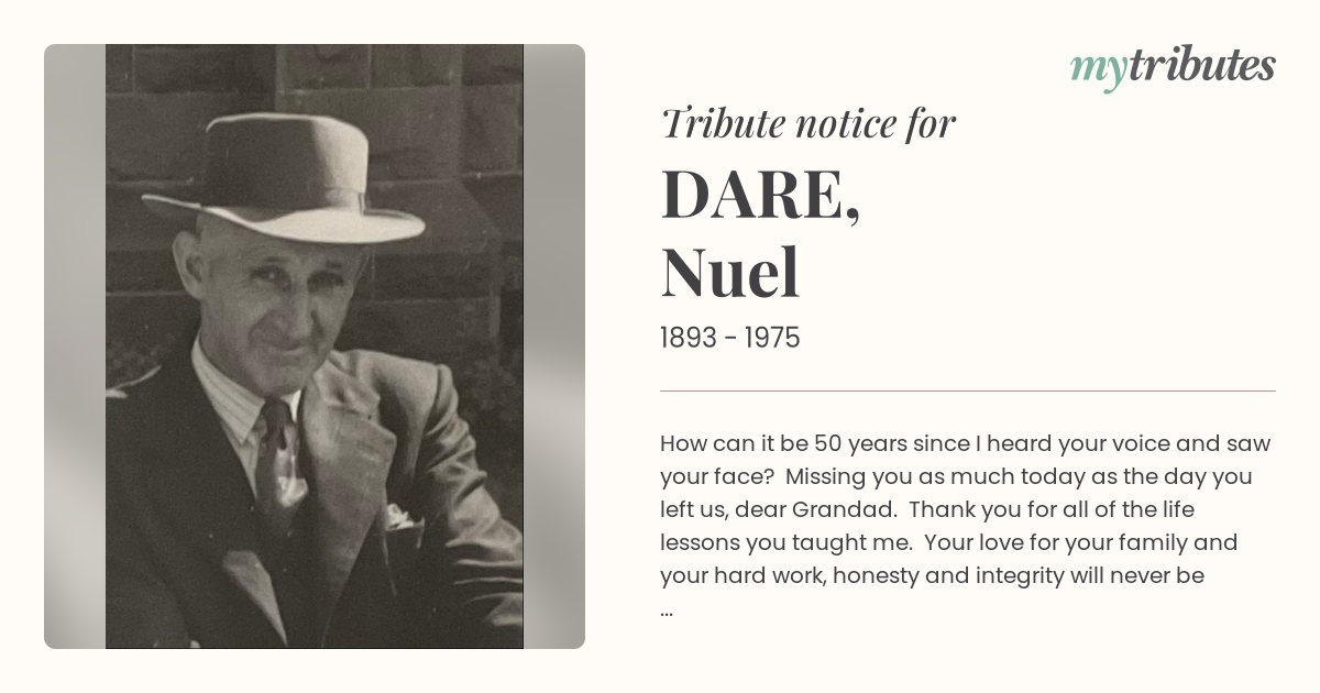 How can it be 50 years since I heard your voice and saw your face? Missing you as much today as the day you left us, dear Grandad. Thank you for all of the life lessons you taught me. Your love for your family and your hard work, honesty and integrity will never be forgotten. Your loving granddaughter, Judith