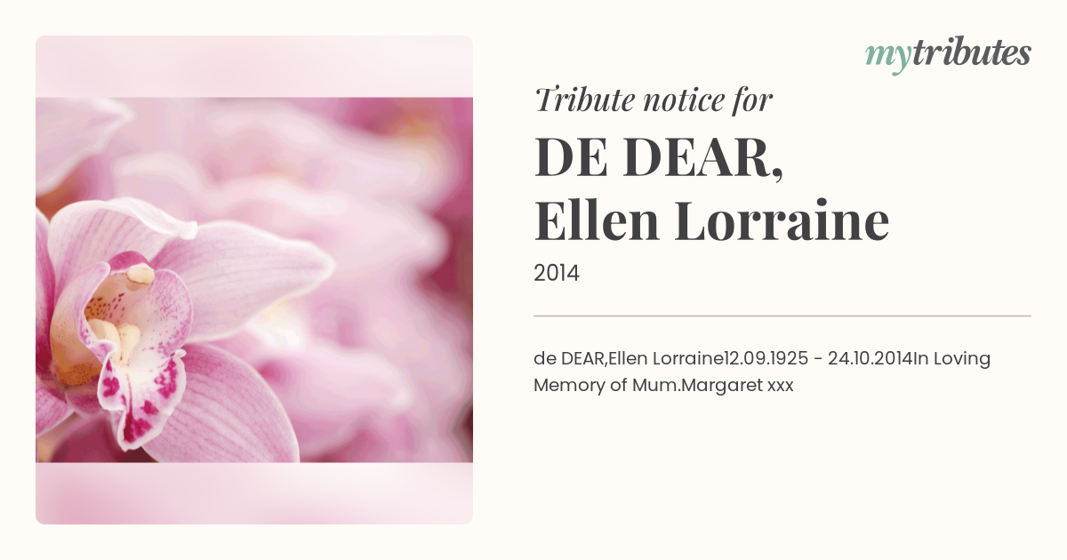 DE DEAR, Ellen Lorraine
