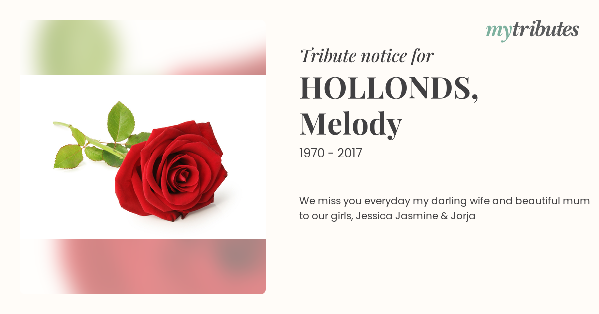 We miss you everyday my darling wife and beautiful mum to our girls, Jessica Jasmine & Jorja