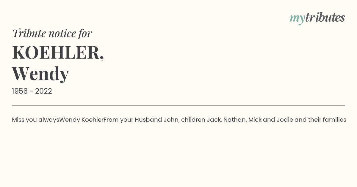 From your Husband John, children Jack, Nathan, Mick and Jodie and their families