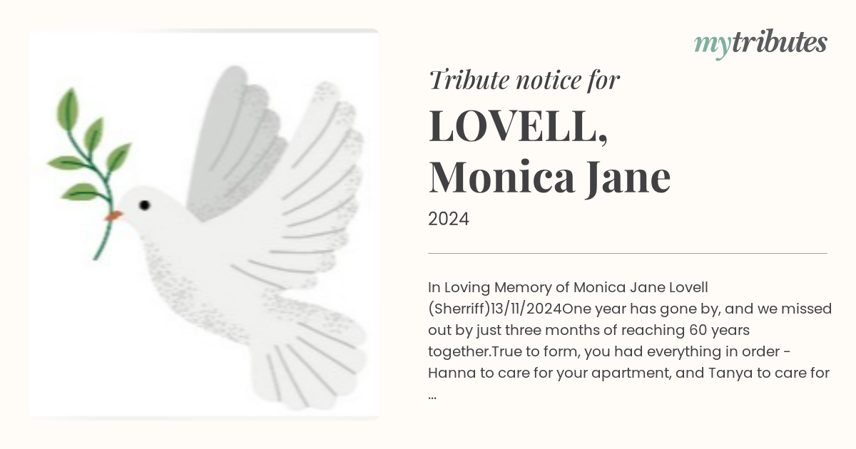 In Loving Memory of Monica Jane Lovell (Sherriff)