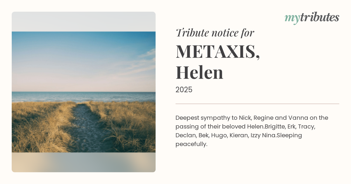 Deepest sympathy to Nick, Regine and Vanna on the passing of their beloved Helen.