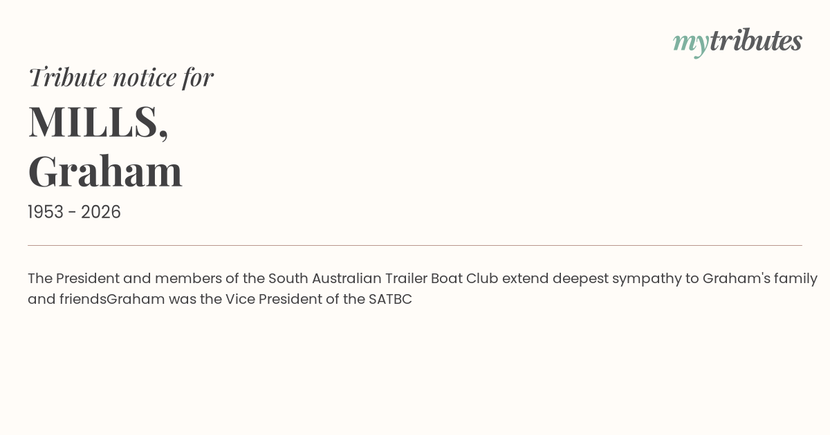 The President and members of the South Australian Trailer Boat Club extend deepest sympathy to Graham's family and friends