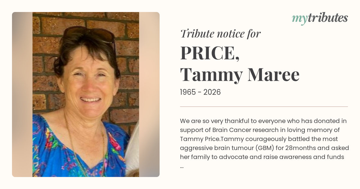 We are so very thankful to everyone who has donated in support of Brain Cancer research in loving memory of Tammy Price.