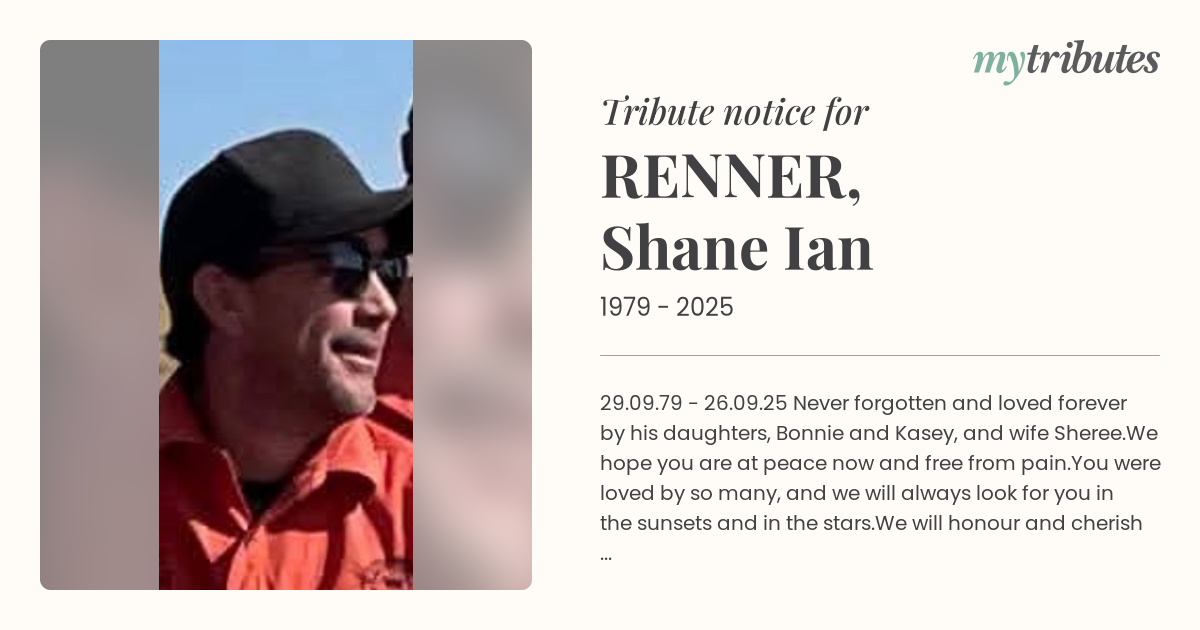 Never forgotten and loved forever by his daughters, Bonnie and Kasey, and wife Sheree.