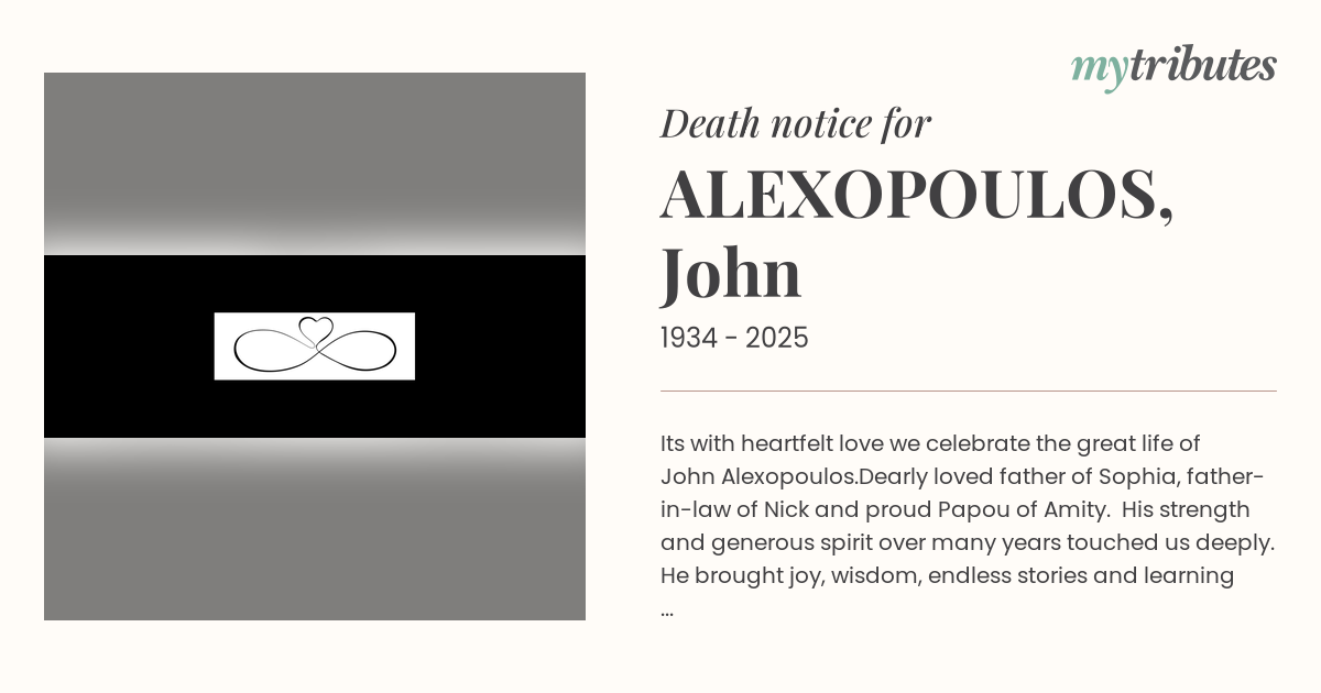 It’s with heartfelt love we celebrate the great life of John Alexopoulos.