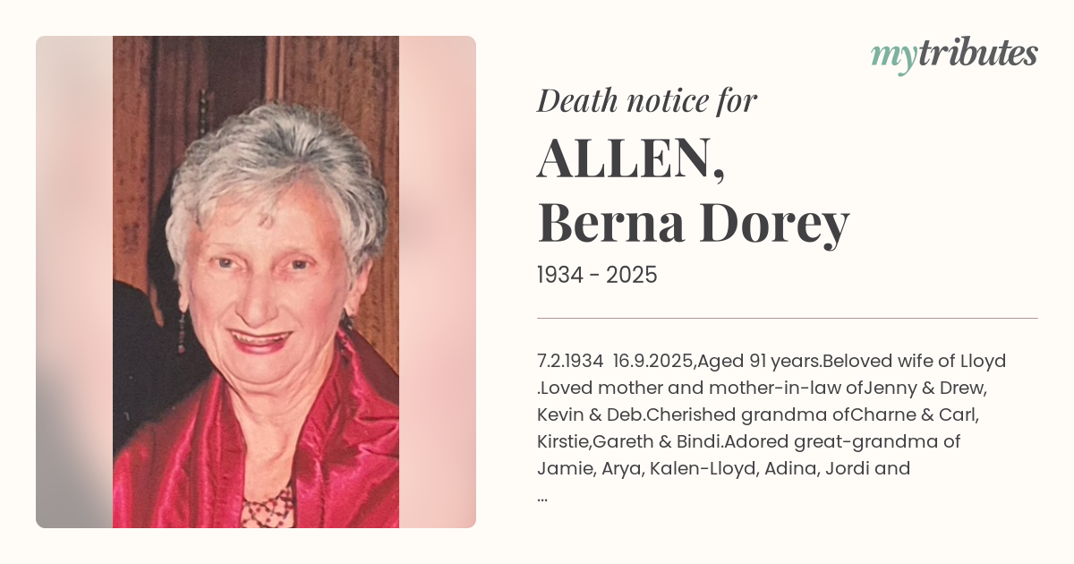 Adored great-grandma of Jamie, Arya, Kalen-Lloyd, Adina, Jordi and Jethro.