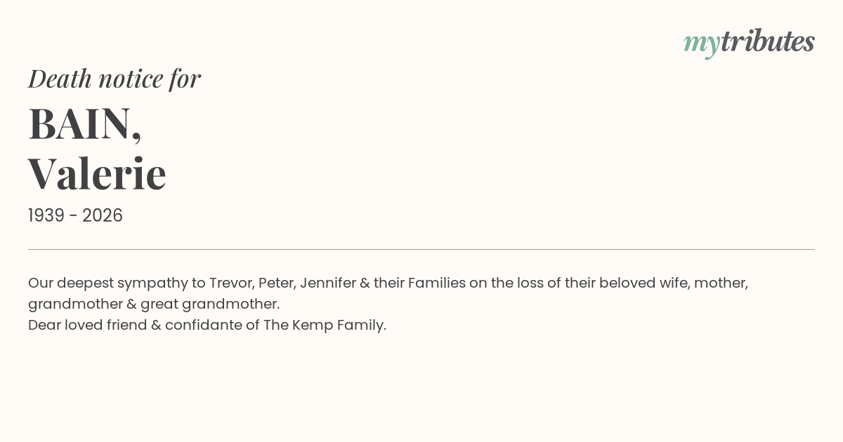 Our deepest sympathy to Trevor, Peter, Jennifer & their Families on the loss of their beloved wife, mother, grandmother & great grandmother.