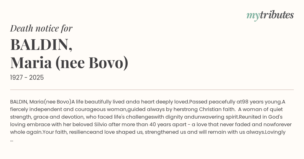 Reunited in God's loving embrace with her beloved Silvio after more than 40 years apart - a love that never faded and now