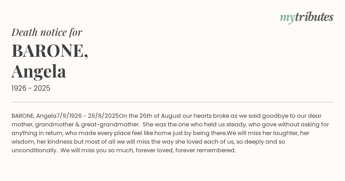 On the 26th of August our hearts broke as we said goodbye to our dear mother, grandmother & great-grandmother. She was the one who held us steady, who gave without asking for anything in return, who made every place feel like home just by being there.