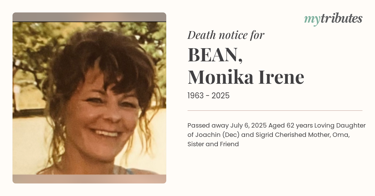 Passed away July 6, 2025 Aged 62 years Loving Daughter of Joachin (Dec) and Sigrid Cherished Mother, Oma, Sister and Friend