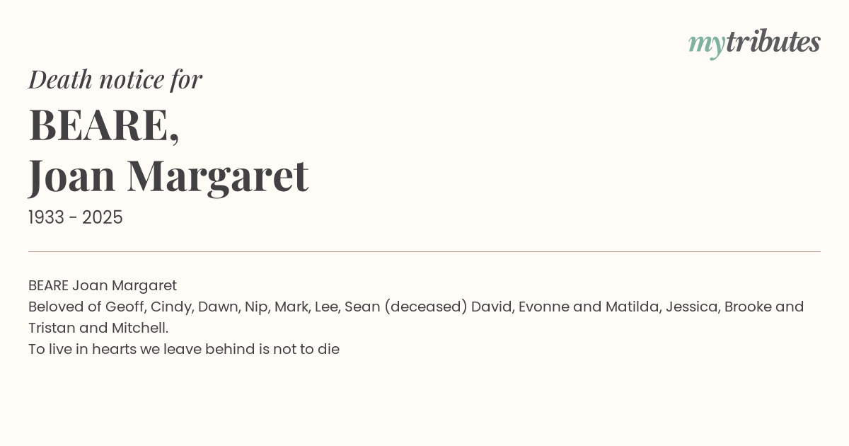 BEARE Joan Margaret