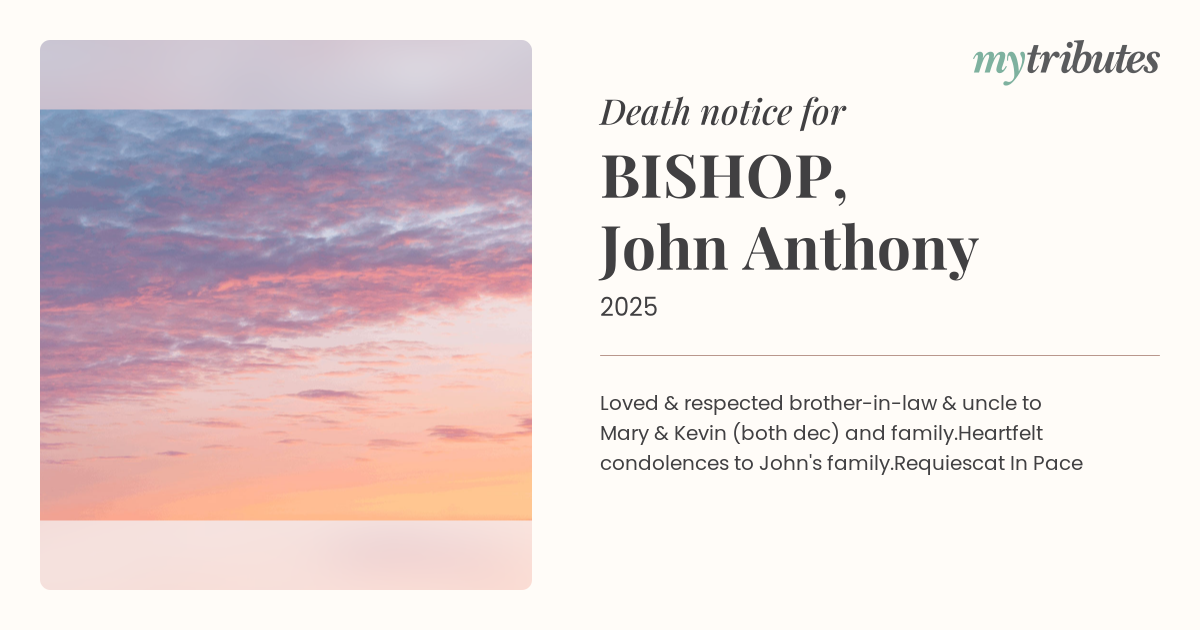 Loved & respected brother-in-law & uncle to Mary & Kevin (both dec) and family.