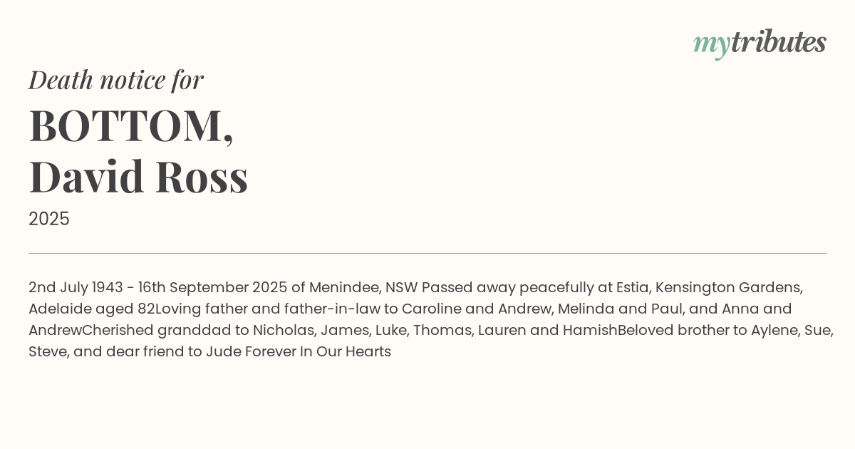 Beloved brother to Aylene, Sue, Steve, and dear friend to Jude