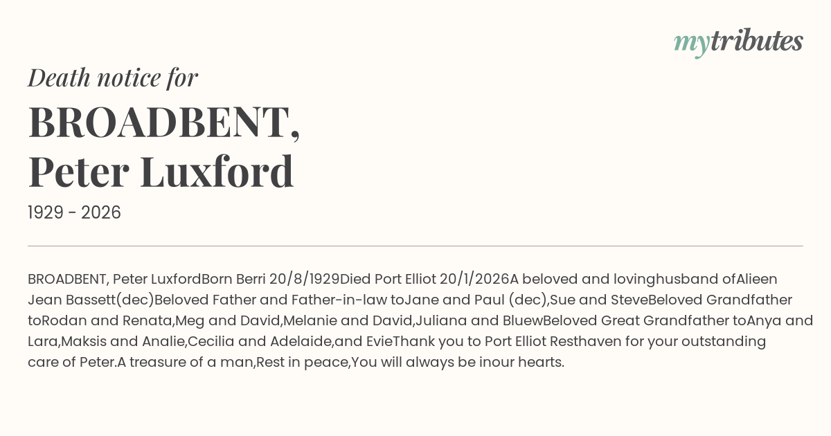 Thank you to Port Elliot Resthaven for your outstanding care of Peter.