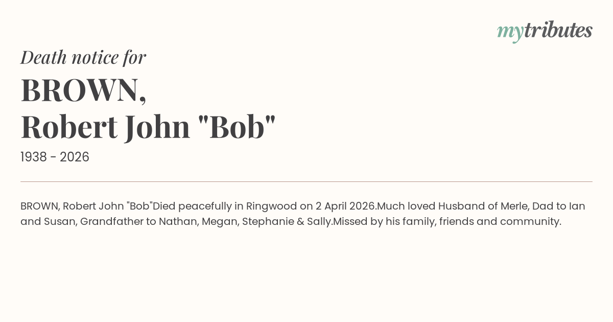 Died peacefully in Ringwood on 2 April 2026.