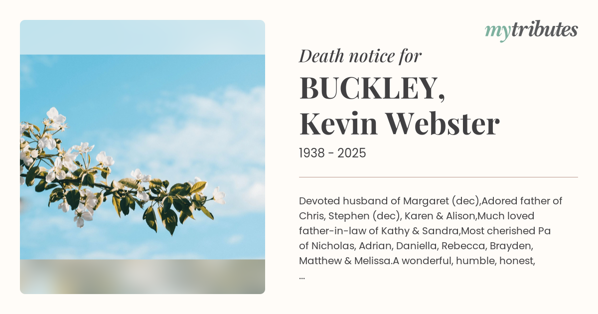 Adored father of Chris, Stephen (dec), Karen & Alison,