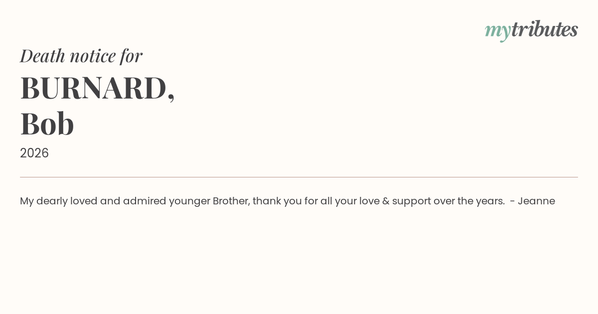 My dearly loved and admired younger Brother, thank you for all your love & support over the years. - Jeanne