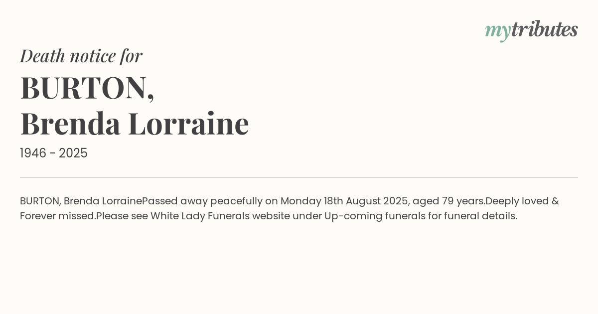 on Monday 18th August 2025, aged 79 years.