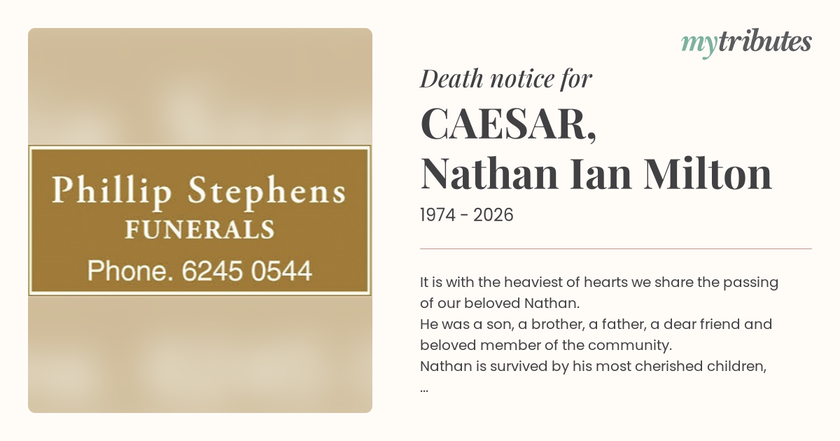 Nathan is survived by his most cherished children, Maxwell and Holly, siblings Maree, Tim and Regina, and parents Wendy and Ian.