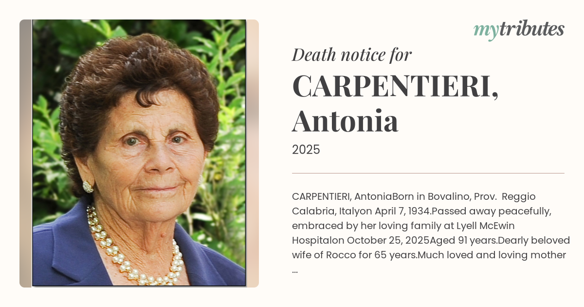 Vincenzo (deceased) and Antonia Carpentieri (Italy),
