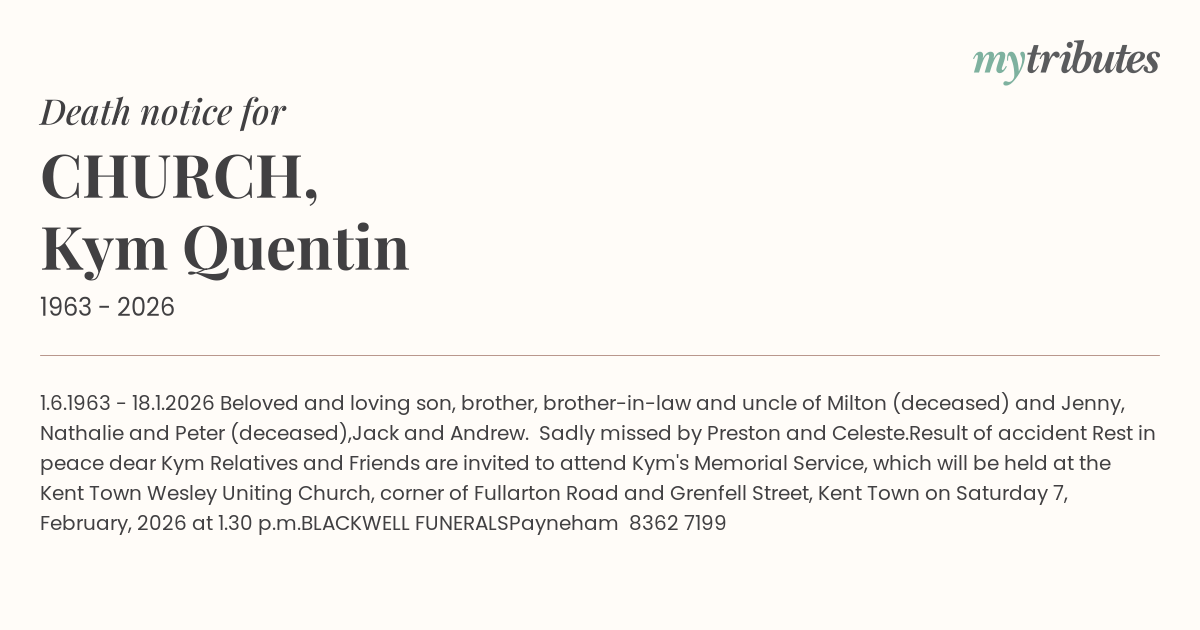 invited to attend Kym's Memorial Service,