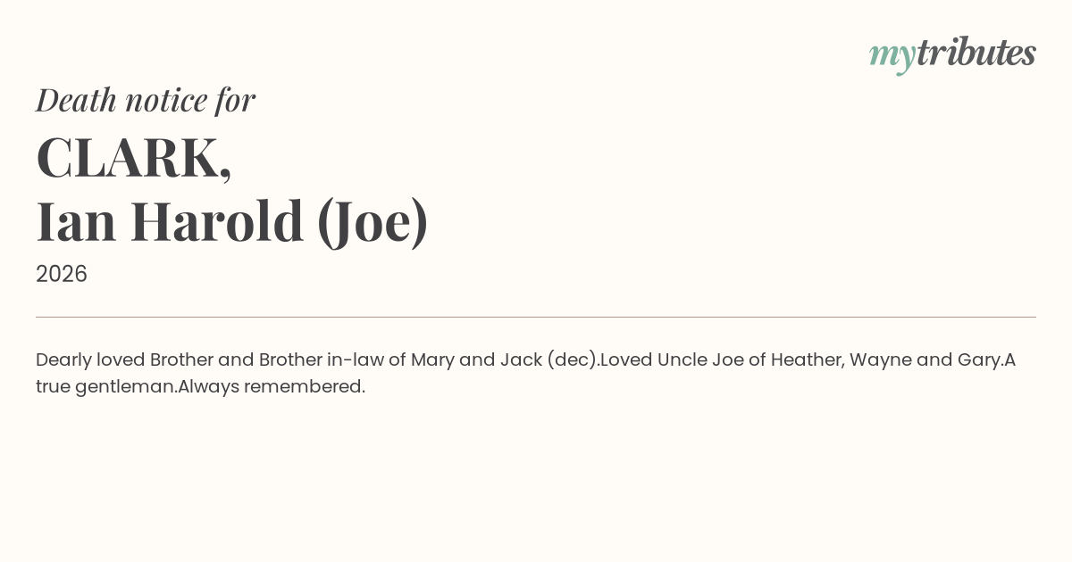 Dearly loved Brother and Brother in-law of Mary and Jack (dec).