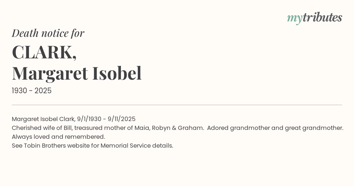 Margaret Isobel Clark, 9/1/1930 - 9/11/2025