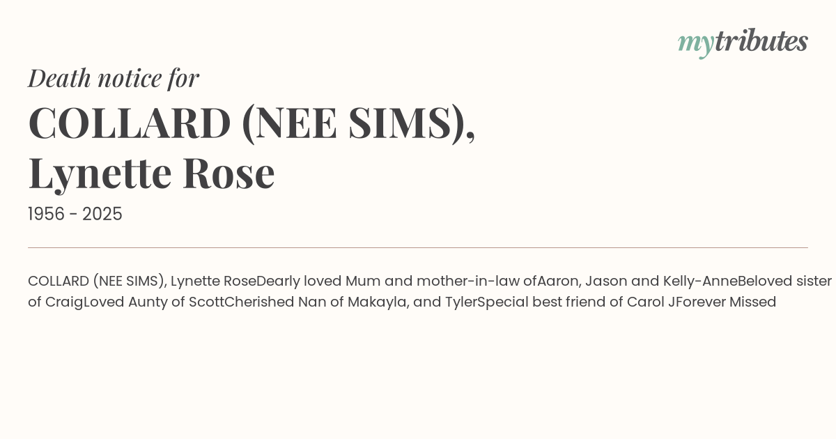 COLLARD (NEE SIMS), Lynette Rose