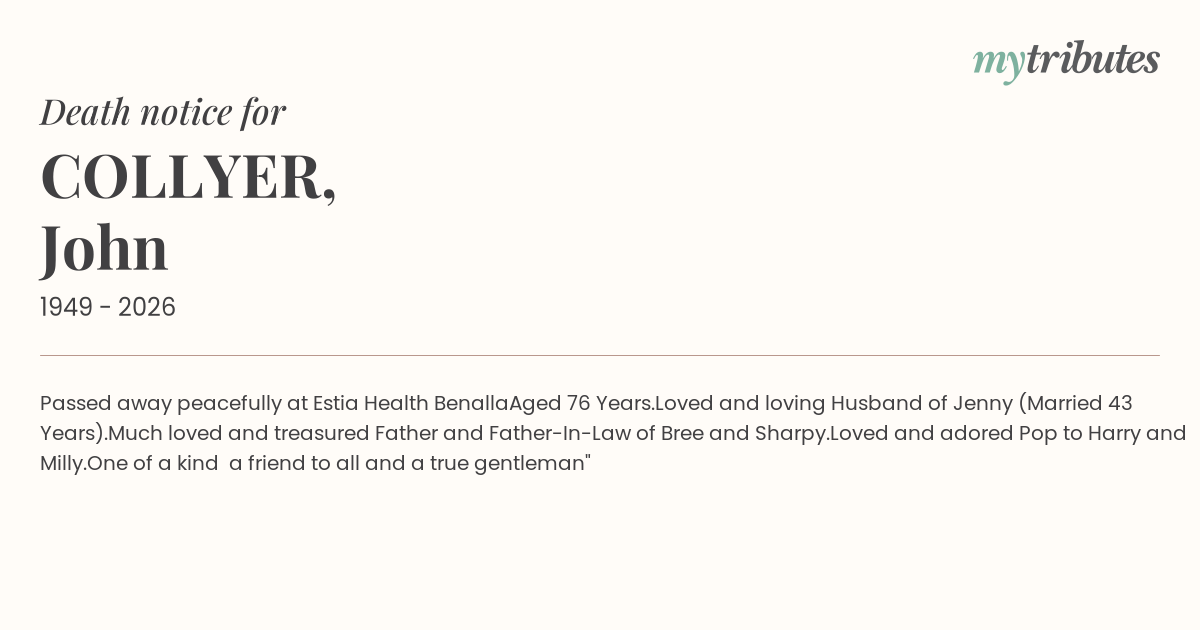 Passed away peacefully at Estia Health Benalla