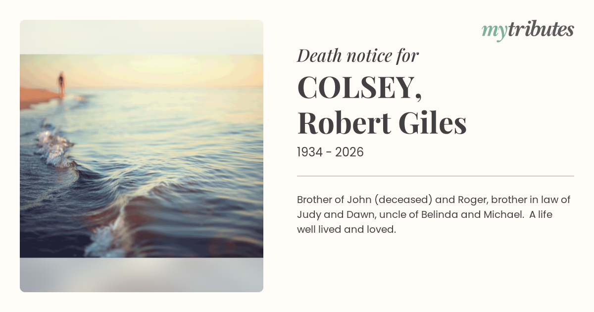 Brother of John (deceased) and Roger, brother in law of Judy and Dawn, uncle of Belinda and Michael. A life well lived and loved.