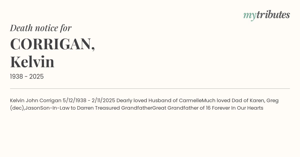 Kelvin John Corrigan 5/12/1938 - 2/11/2025