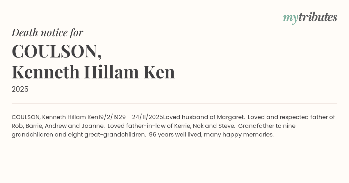 COULSON, Kenneth Hillam ‘Ken’
