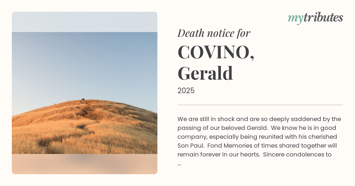 We are still in shock and are so deeply saddened by the passing of our beloved Gerald. We know he is in good company, especially being reunited with his cherished Son Paul.