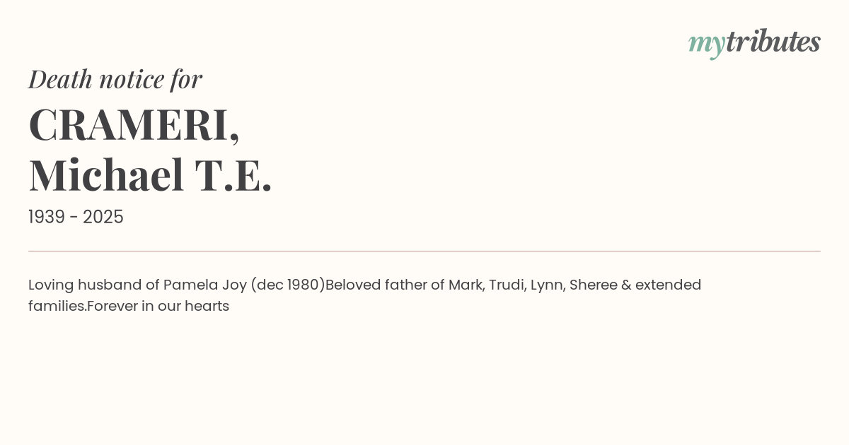 Beloved father of Mark, Trudi, Lynn, Sheree & extended families.