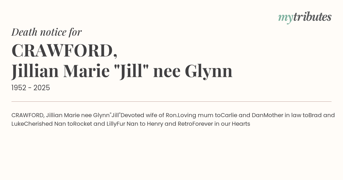 CRAWFORD, Jillian Marie nee Glynn