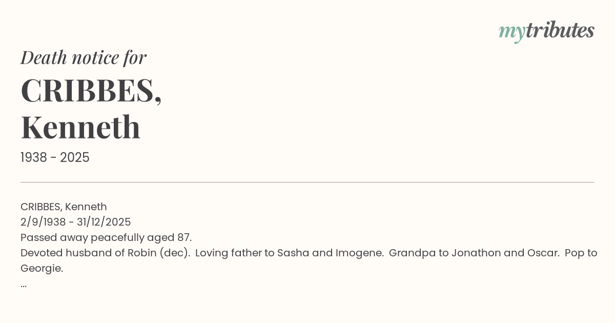 CRIBBES, Kenneth