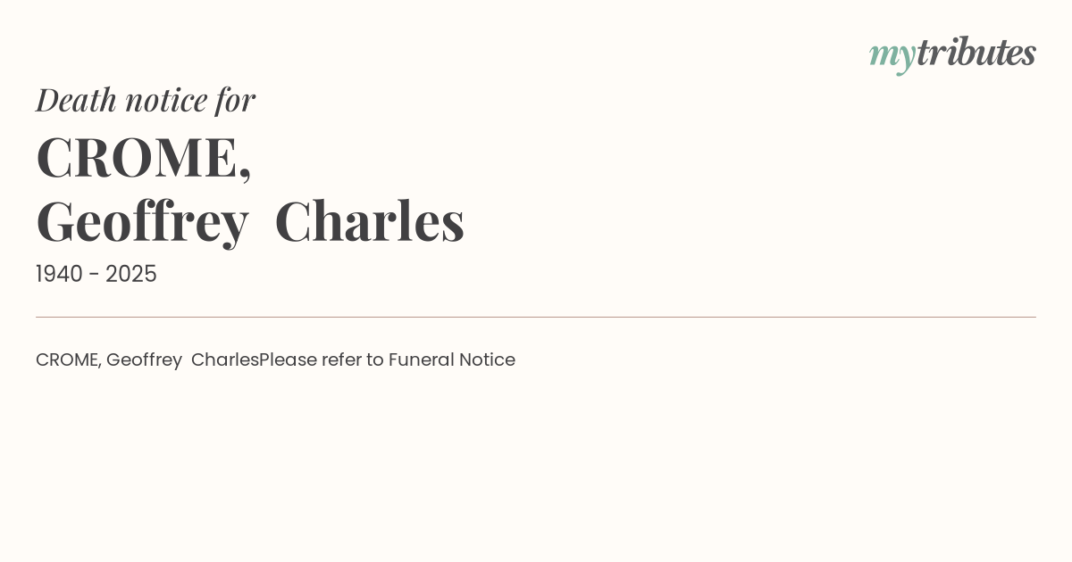 CROME, Geoffrey CharlesPlease refer to Funeral Notice