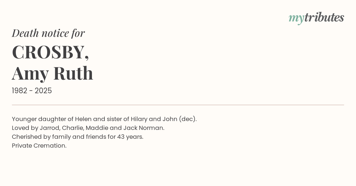 Loved by Jarrod, Charlie, Maddie and Jack Norman.