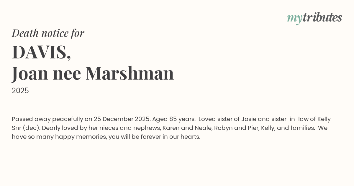 Passed away peacefully on 25 December 2025.