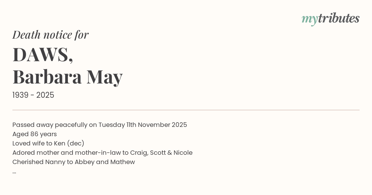 Adored mother and mother-in-law to Craig, Scott & Nicole