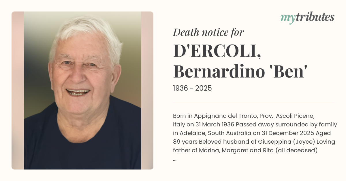 Passed away surrounded by family in Adelaide, South Australia on 31 December 2025