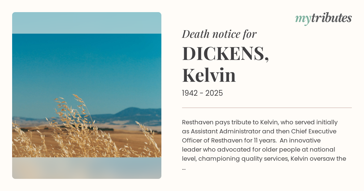 Resthaven pays tribute to Kelvin, who served initially as Assistant Administrator and then Chief Executive Officer of Resthaven for 11 years. An innovative leader who advocated for older people at national level, championing quality services, Kelvin oversaw the introduction of community services and home care for older individuals to remain living in their homes.