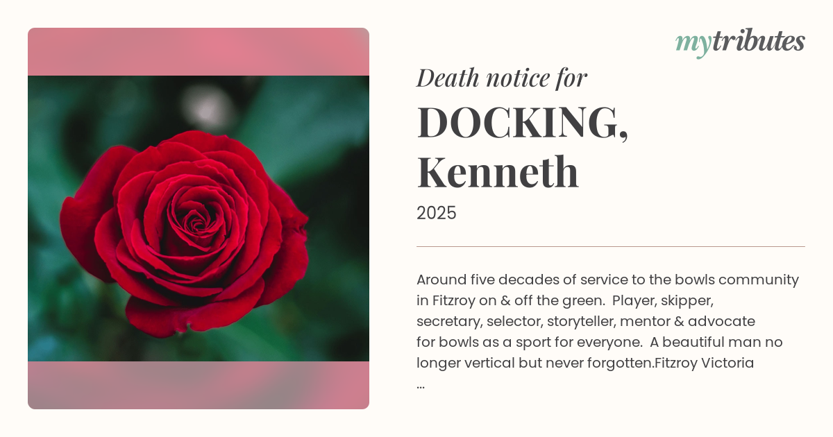 Around five decades of service to the bowls community in Fitzroy on & off the green. Player, skipper, secretary, selector, storyteller, mentor & advocate for bowls as a sport for everyone. A beautiful man no longer vertical but never forgotten.