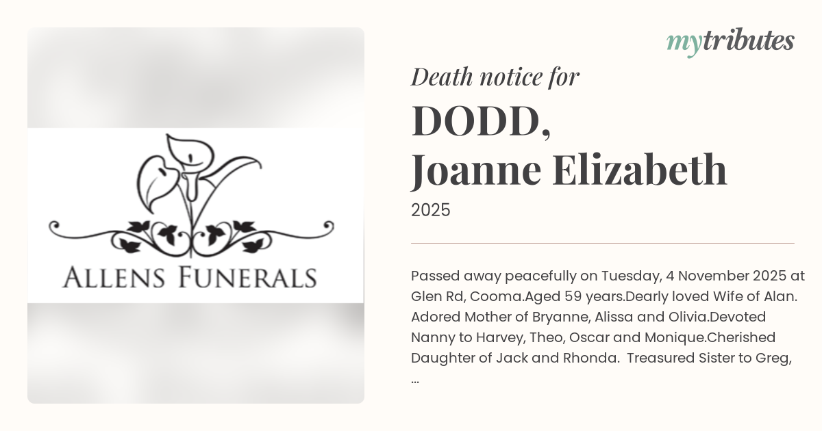 The relatives and friends of the late JOANNE ELIZABETH DODD are