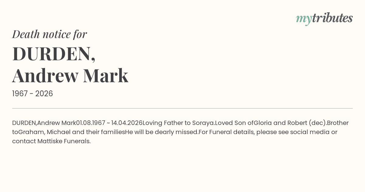 For Funeral details, please see social media or contact Mattiske Funerals.