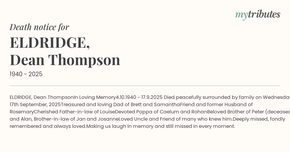 ELDRIDGE, Dean Thompson