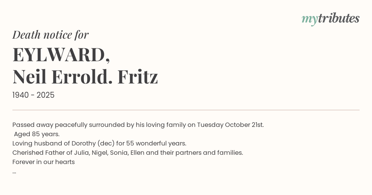 Cherished Father of Julia, Nigel, Sonia, Ellen and their partners and families.