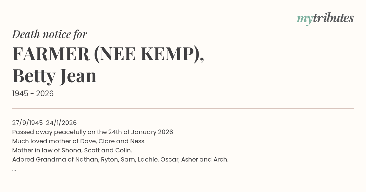 Adored Grandma of Nathan, Ryton, Sam, Lachie, Oscar, Asher and Arch.
